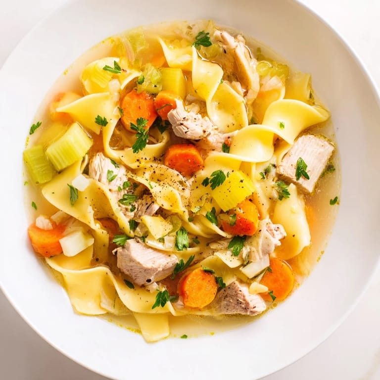 Pin It A comforting, classic soup featuring tender chicken, hearty vegetables, and egg noodles in a flavorful homemade broth—perfect for chilly days or when you need a nourishing boost.