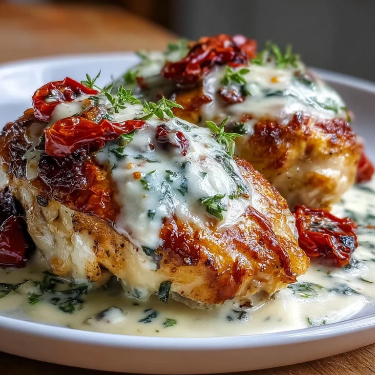 Pin It The seamless blend of creamy sauce and tender chicken makes this dish a family favorite. The sun-dried tomatoes add a sweet and tangy depth, while the spinach brings freshness and nutrients. All prepared in a single skillet to minimize cleanup.