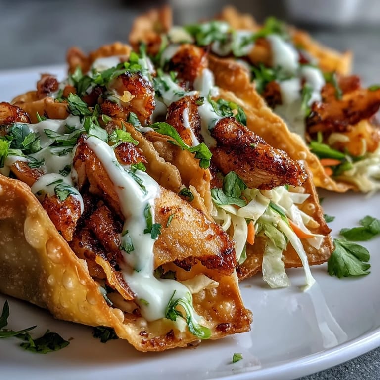 Pin It My kitchen smelled like a street market the first time I fried wonton wrappers for tacos. The oil sizzled, the ginger hit my nose, and I remember thinking this mashup might be ridiculous or genius. When I bit into that first crispy shell loaded with tangy slaw and spicy chicken, I knew I had stumbled onto something worth repeating. These tacos are loud, messy, and completely unapologetic.