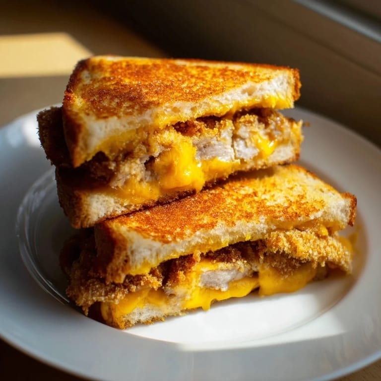 Pin It There's something about the sizzle of a pork chop hitting hot oil that makes everything else fade away. I stumbled onto this sandwich idea on a random Tuesday when I had leftover panko-crusted pork chops in the fridge and a craving for something more interesting than a plain grilled cheese. The moment I pressed that first golden-brown sandwich into the skillet and heard the butter snap, I knew I'd discovered something special—crispy bread giving way to melted cheddar and tender, breaded pork that somehow feels both decadent and comforting.