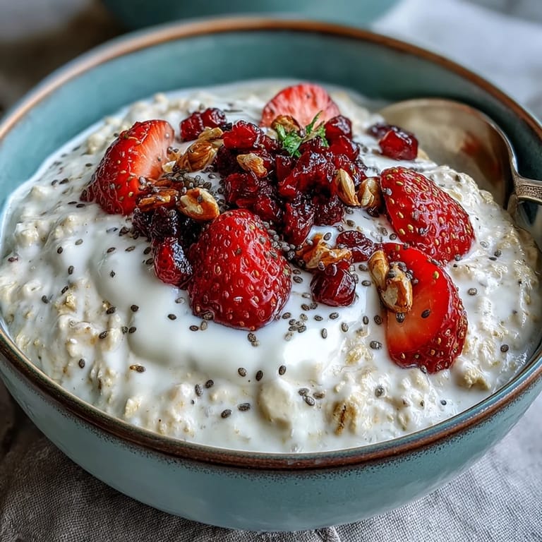 Serve the oats chilled, topped with extra sliced strawberries, crunchy chopped nuts, and a sprinkle of unsweetened coconut flakes. Prepare servings in individual jars for a grab-and-go breakfast option that’s both convenient and visually appealing.
