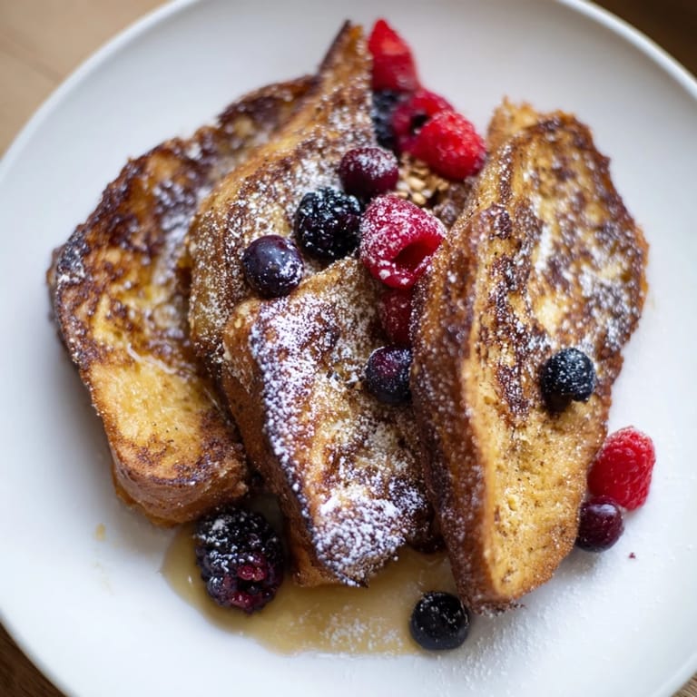 Pin It I discovered ice cream French toast by accident on a sweltering July morning when my freezer had melted everything into creamy puddles. Rather than waste a tub of vanilla, I whisked it into eggs and suddenly had the richest, most luxurious custard I'd ever made. That single mistake became something I now intentionally recreate, because the melted ice cream adds a depth that regular milk and eggs simply cannot match. The caramelized edges form a subtle crust while the inside stays impossibly custardy and soft.