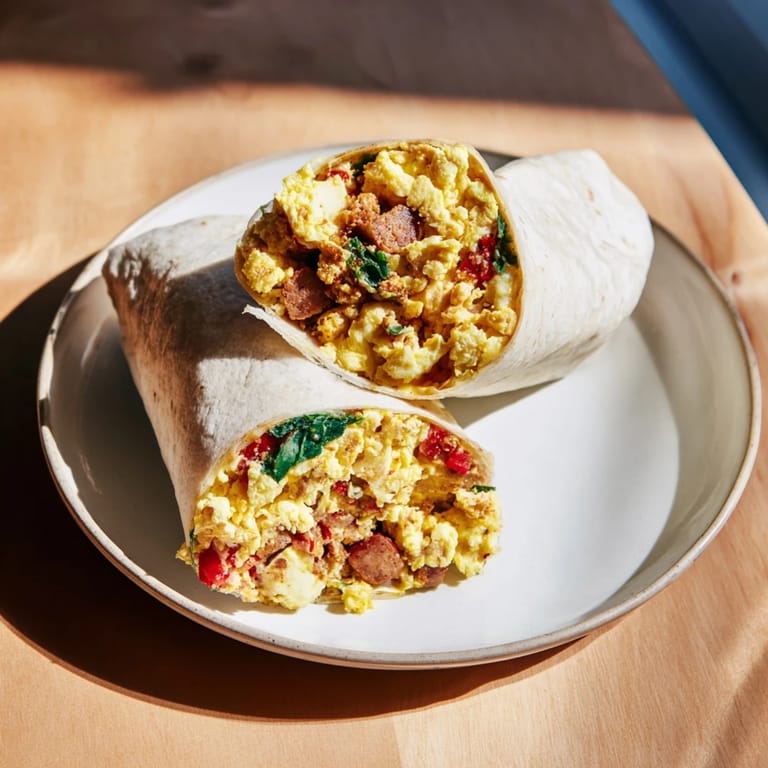 Pin It Hearty and flavorful breakfast burritos filled with eggs, sausage, vegetables, and cheese, perfect for meal prep and busy mornings.