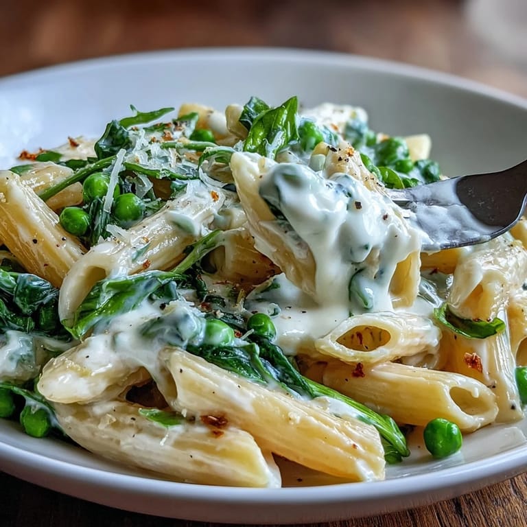 I’ve found this pasta’s charm is how easily it adapts to whatever is in the fridge or at the market. In spring, the peas burst with sweetness, and you can toss in asparagus tips or even fiddleheads. When summer comes around, I swap in arugula or cherry tomatoes that melt just enough to become the tender heart of the sauce. Cooler months, I lean on kale or Swiss chard and sometimes throw in roasted squash for heft. No matter the season, a fresh sprinkle of lemon zest at the end never fails to wake up the flavors.